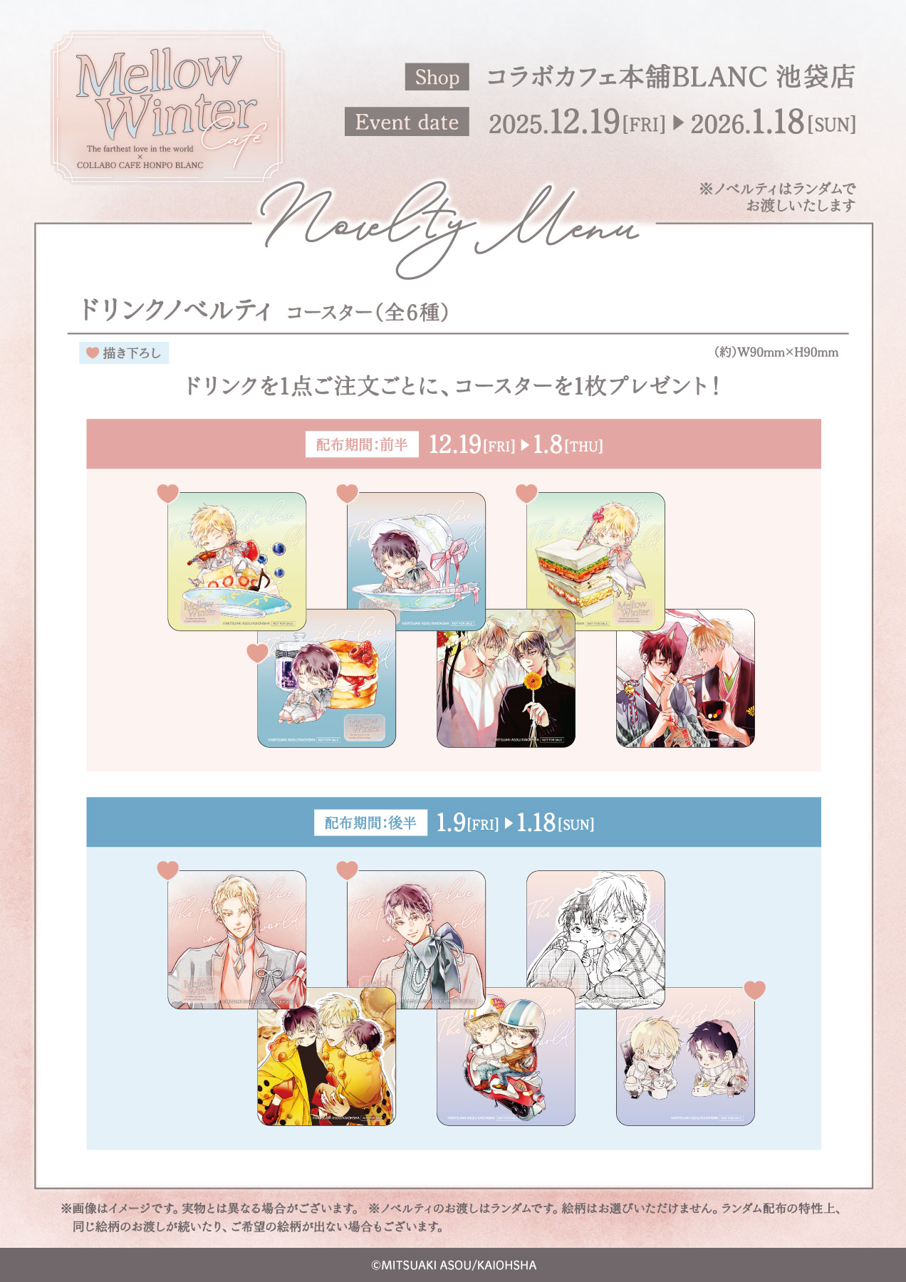 【お買い上げノベルティ】前半後半配布期間:絵柄入れ替えに関するお知らせ