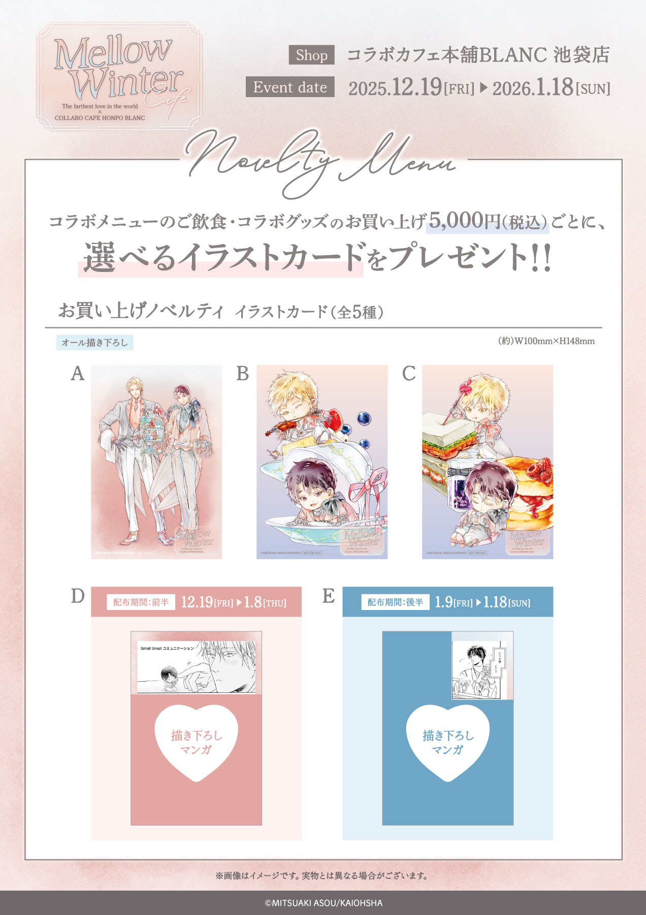 配布期間:前半「D」、配布期間:後半「E」の絵柄を入れ替えております。
